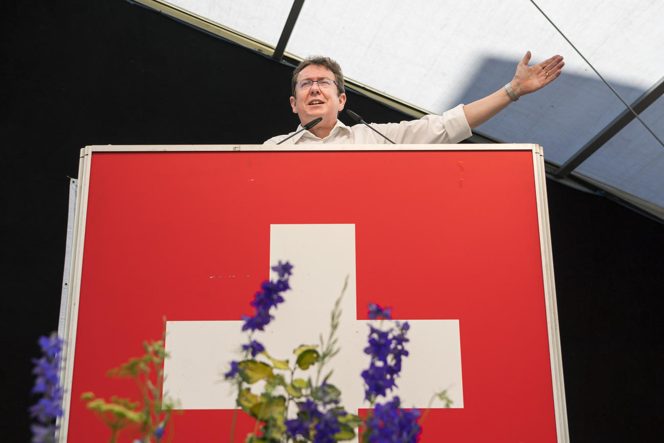 Plus importante formation politique du pays, l'UDC - ici son président Albert Rösti - est également celle qui se montre la plus intransparente quant au financement des ses campagnes. Keystone / Jean-christophe Bott