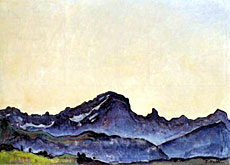 «Le Grand Muveran» a été créée en 1912 lors d’un séjour du peintre bernois à Chesières, près de Villars, dans le Canton de Vaud. Cette huile (64 x 87 cm)évoque le massif alpin à l’aube.