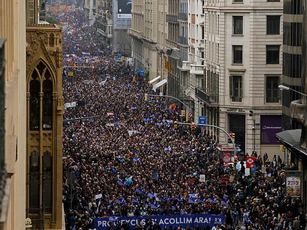 Vers 17h00, la Via Laietana – avenue traversant la vieille ville jusqu’au port – était pleine de manifestants, a constaté un photographe de l’AFP. La maire de gauche de la deuxième ville d’Espagne, Ada Colau, avait appelé les manifestants à «emplir les rues» pour cette marche intitulée «Nous voulons accueillir» («volem acollir», en catalan).