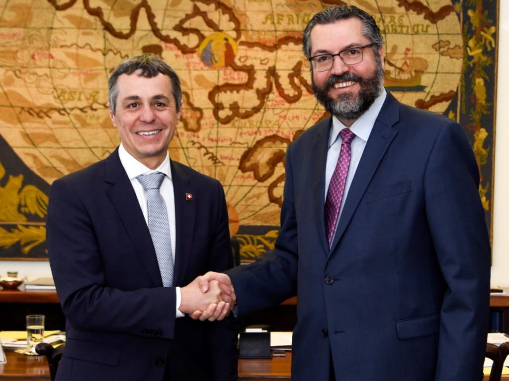 (Keystone-ATS) Au terme de sa visite sur le continent sud-américain, le conseiller fédéral Ignazio Cassis a rencontré son homologue brésilien Ernesto Araújo. Les deux hommes ont souligné l’importance d’une rapide conclusion de l’accord de libre-échange entre l’AELE et le Mercosur.