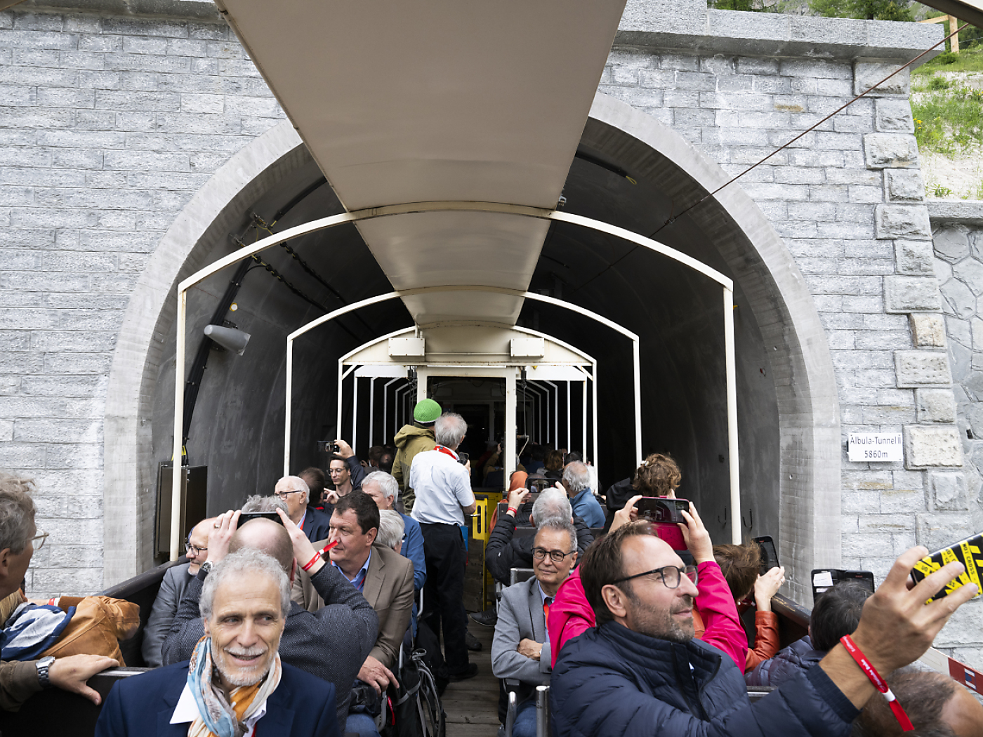 Tout le gratin politique grison a assisté à la cérémonie d’inauguration à 1800 m d’altitude, en présence également du conseiller fédéral en charge des transports Albert Rösti, hôte d’honneur. Les personnes présentes ont pu assister à un show à l’intérieur du tube.