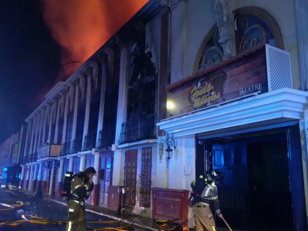 Les photos diffusées par les secours montrent les façades noircies et ravagées du «Teatre» et de la «Fonda Milagros», dont la devanture a été dévorée par les flammes.