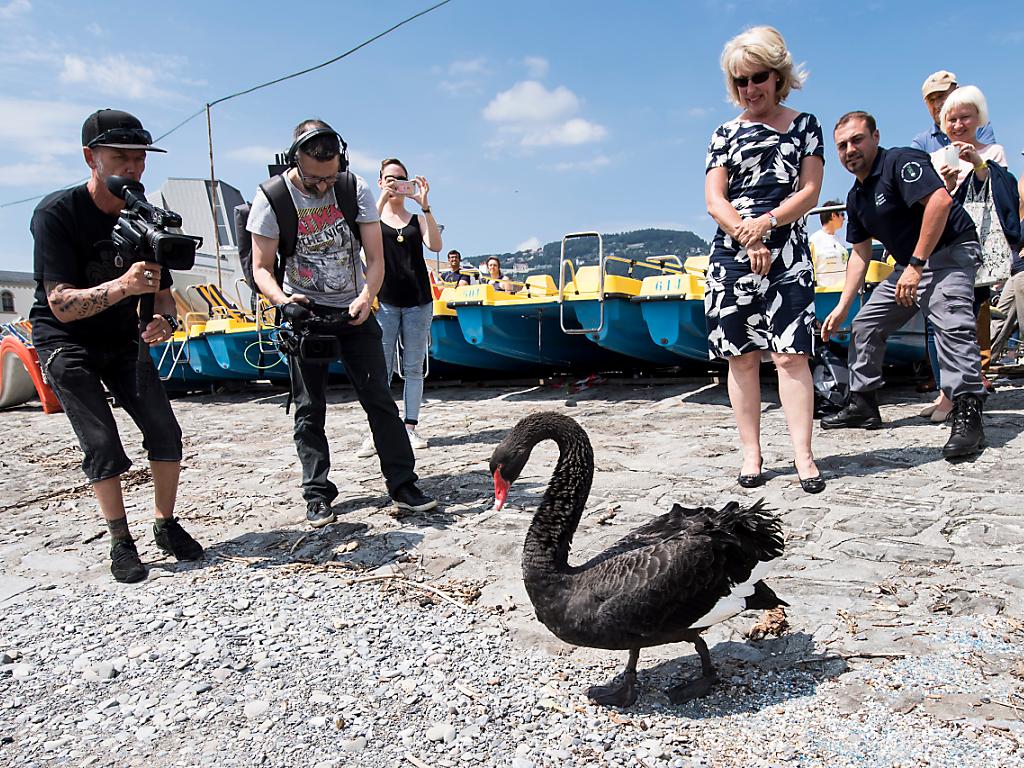 (Keystone-ATS) Un cygne noir australien met en émoi la Riviera depuis ce printemps. Les autorités cantonales l’avaient capturé pour le remettre à son propriétaire, mais celui-ci n’a pas pu être retrouvé. Jacqueline de Quattro l’a relâché jeudi à Vevey.