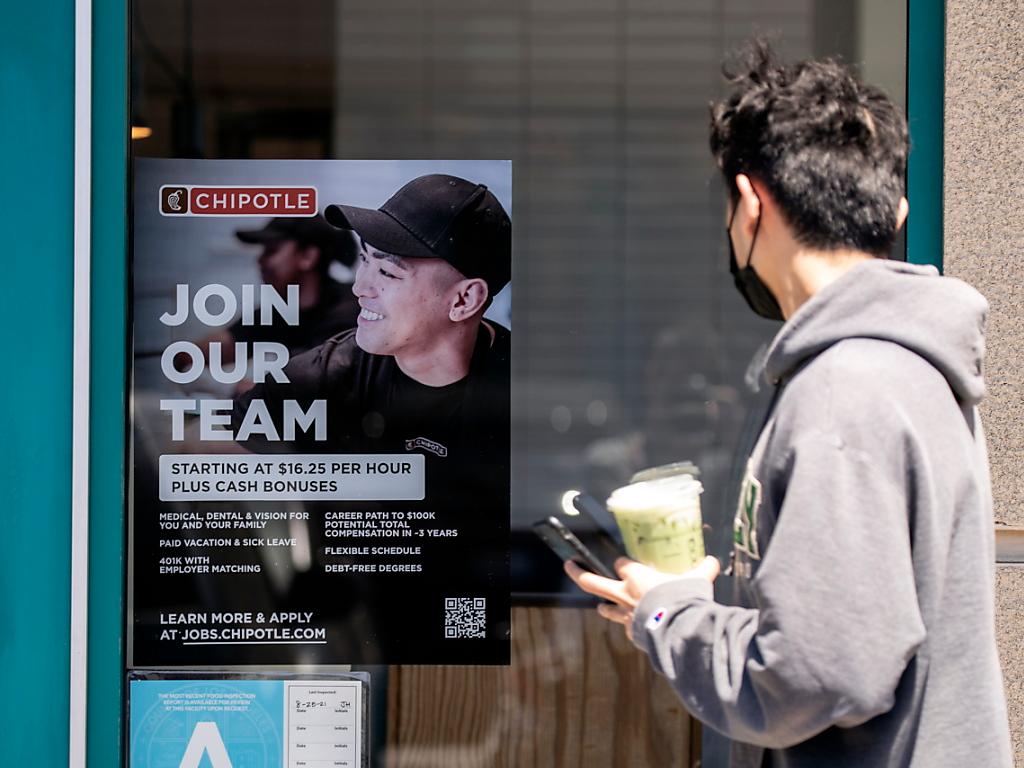La santé du marché du travail est scrutée de très près aux Etats-Unis, car si sa dégradation va de pair avec la lutte contre l'inflation, elle pourrait aussi signaler l'approche d'une récession. (archives) KEYSTONE/EPA/ETIENNE LAURENT sda-ats