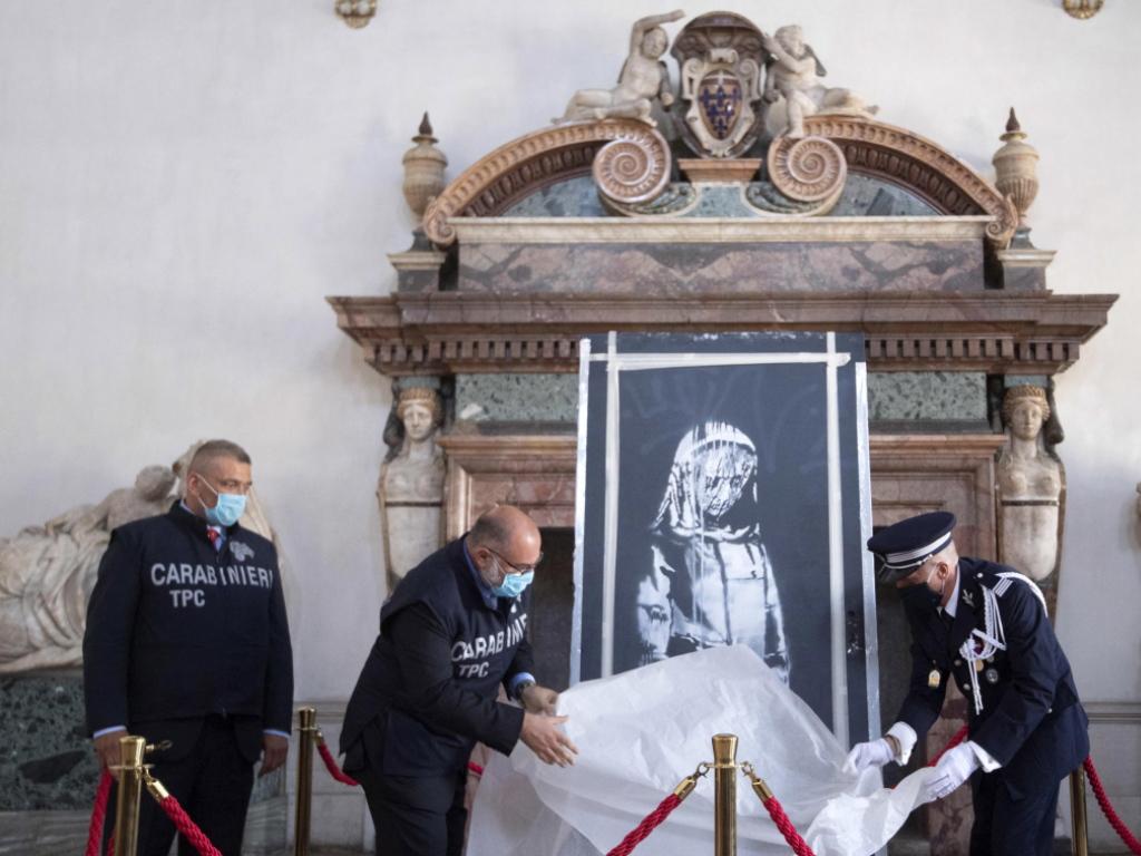 (Keystone-ATS) Elle représente une jeune fille à l’air triste: l’Italie a restitué officiellement à la France mardi une oeuvre attribuée à Banksy, hommage aux victimes des attentats de novembre 2015 à Paris, volée en 2019 et récemment retrouvée dans une ferme non loin de Rome.