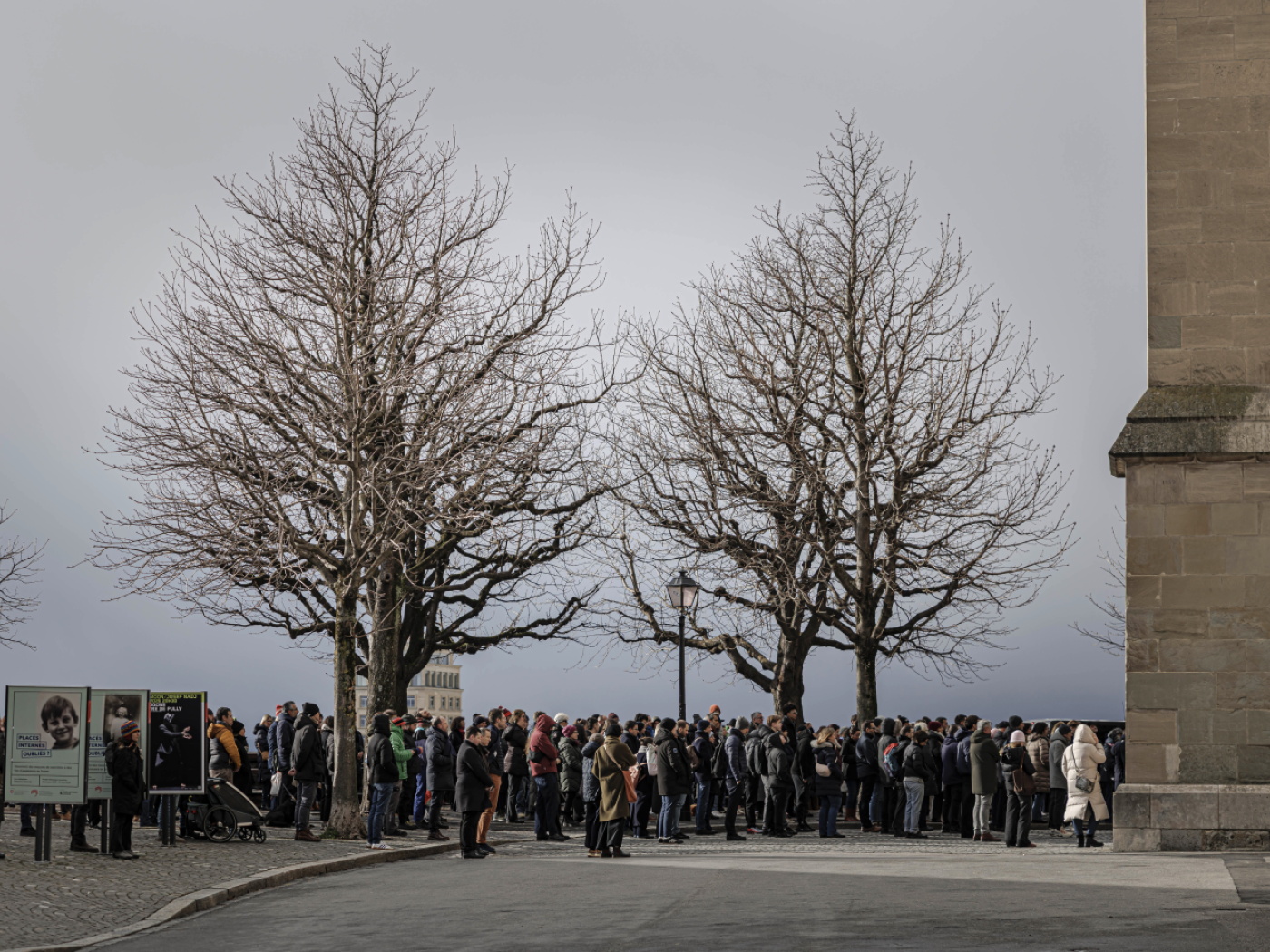 Les portes de l’édifice avaient dû être fermées dès le début de l’hommage, signe que le nombre de 975 personnes que peut accueillir la cathédrale avait été atteint. Quelques centaines de personnes sont restées à l’extérieur pendant la minute de silence puis durant la sonnerie des cloches, avant de se dissiper, a constaté Keystone-ATS.
