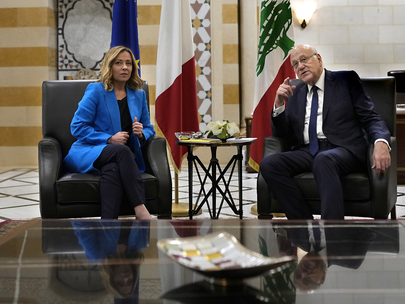 Mme Meloni, dont le pays est le deuxième plus grand contributeur à la mission de maintien de la paix de l’ONU au Liban (Finul), et qui assure aussi la présidence tournante du G7, a été accueillie à l’aéroport Rafic Hariri de Beyrouth par son homologue libanais Najib Mikati, selon ses services.