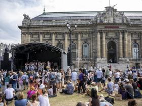 Quasi simultanément s’est jouée une flash mob en grand format, sur les marches de la Cathédrale. Plus de 200 élèves d’instruments à cordes ont joué pour célébrer les 90 ans du Conservatoire populaire de musique. Samedi soir, le Festival Electron a transformé la Place de Neuve en dancefloor à ciel ouvert, aux sons électroniques des DJ perchés sur le balcon du Grand Théâtre.