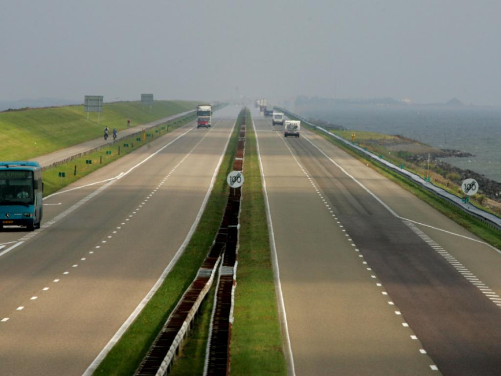 Longue de 32 kilomètres et érigée en 1932, la digue de fermeture, appelée Afsluitdijk en Néerlandais, nécessite d'être significativement renforcée (archives). KEYSTONE/AP/PETER DEJONG sda-ats