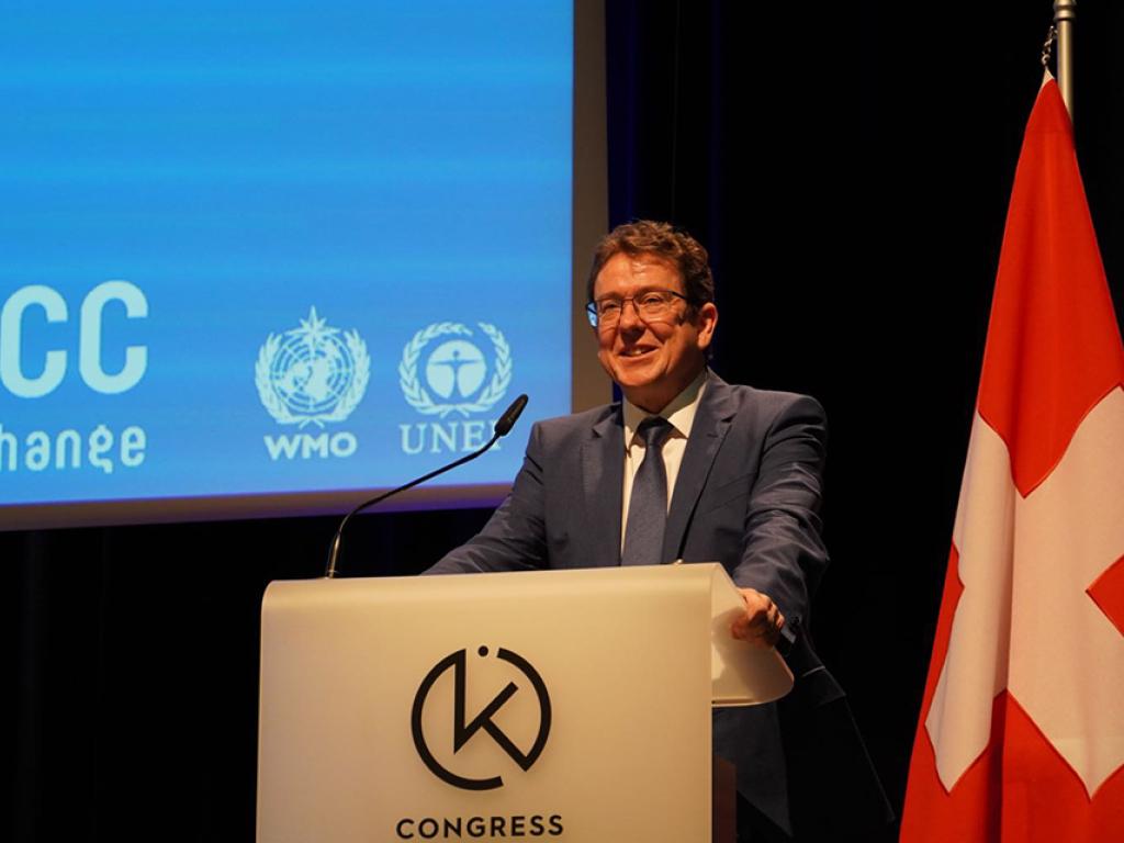 Dans son allocution de bienvenue, le conseiller fédéral Albert Rösti a souligné la vulnérabilité de la Suisse. Le pays alpin est particulièrement concerné par le réchauffement climatique, a relevé le ministre en charge de l’environnement. La fonte du pergélisol représente ainsi un défi de taille pour les régions de montagnes et le tourisme.