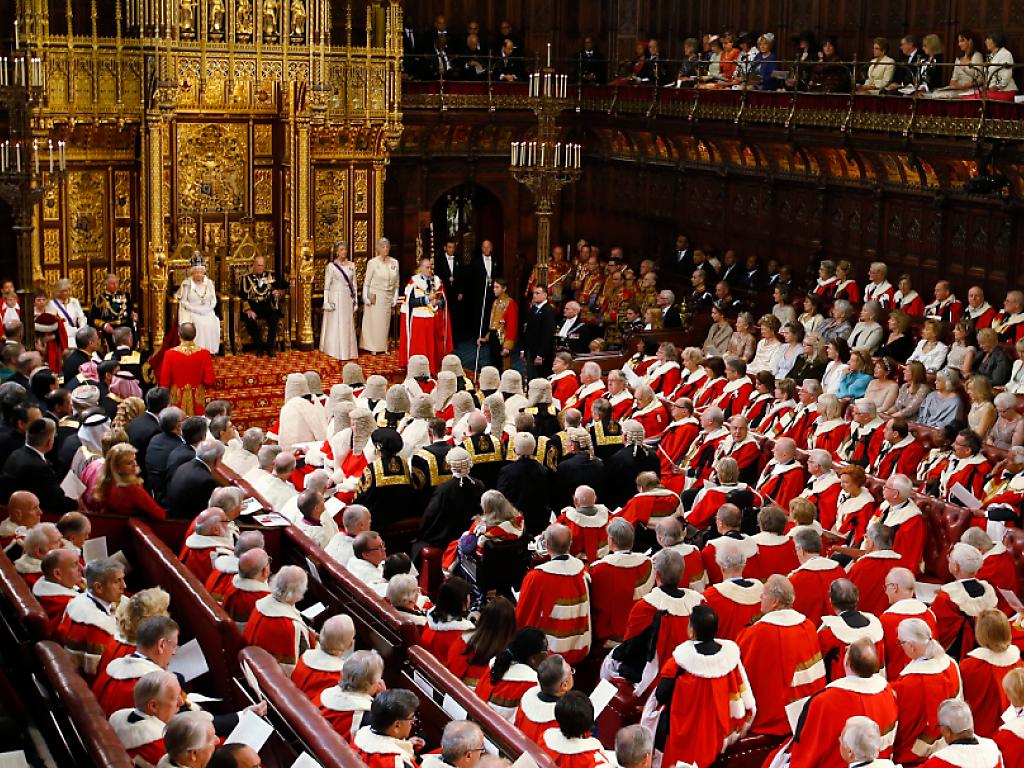 La chambre des Lords, qui compte actuellement 812 membres, face à la reine (archives). KEYSTONE/AP Pool/ALASTAIR GRANT sda-ats