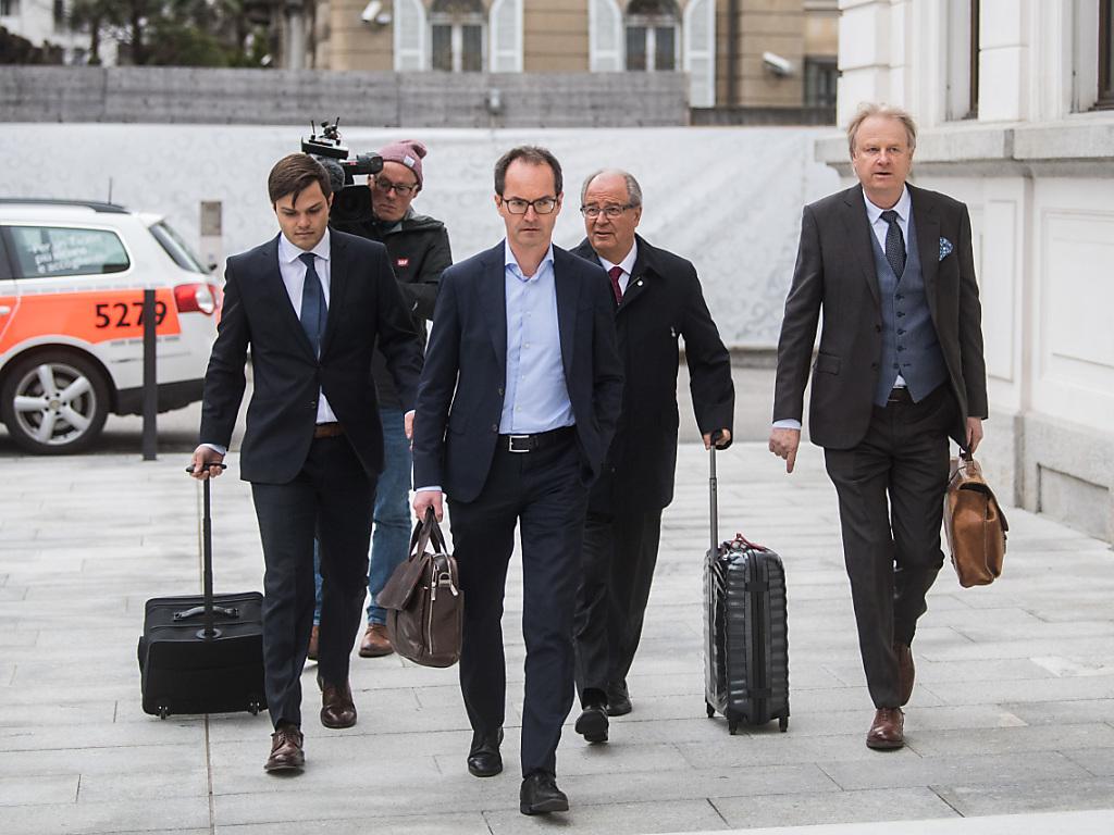 Urs Linsi est arrivé ce matin avec ses avocats au Tribunal pénal fédéral à Bellinzone. KEYSTONE/Ti-Press/Samuel Golay sda-ats
