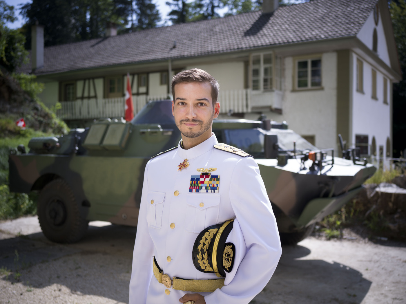 (Keystone-ATS) Jonas Lauwiner aime poser en uniforme d’apparat blanc devant un canon antiaérien ou un blindé. Dans sa propagande électorale, il explique que c’est à l’Etat d’économiser, pas aux citoyens et promet de reverser 50% de son salaire au canton dès son élection au Conseil-exécutif.