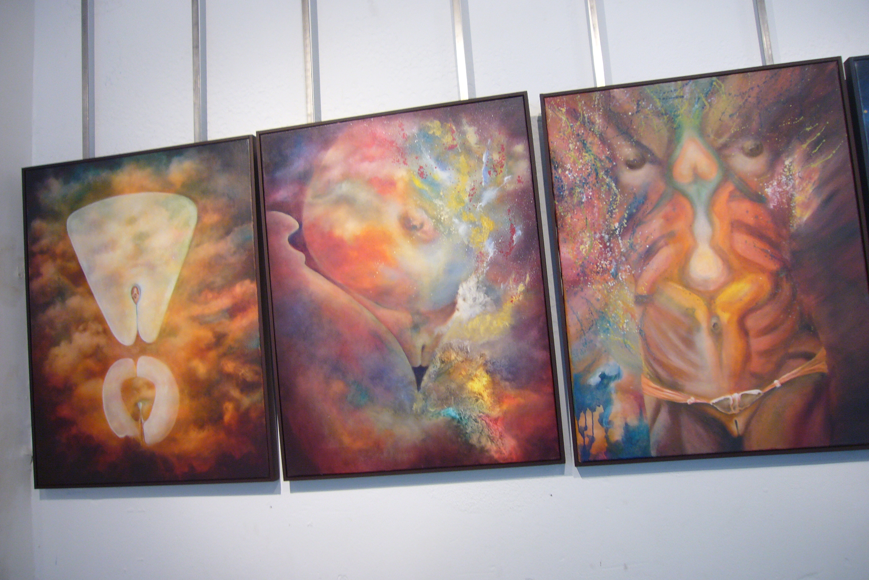 «C’est vrai… Ces toiles s’adressent aux femmes. Aux petites filles, aux femmes, aux femmes plus âgées… aux femmes en général», explique Titine K-Leu. «Je voulais montrer la femme dans tous ses états. Et la femme, ça commence par là. Tout, chez la femme, commence par là, je pense. La vie, la sexualité, nos problèmes hormonaux, tout! Les femmes en parlent peu, mais c’est vrai».