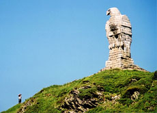 Avant le tunnel, la route du Simplon passait par le col, que garde cet aigle de pierre. picswiss