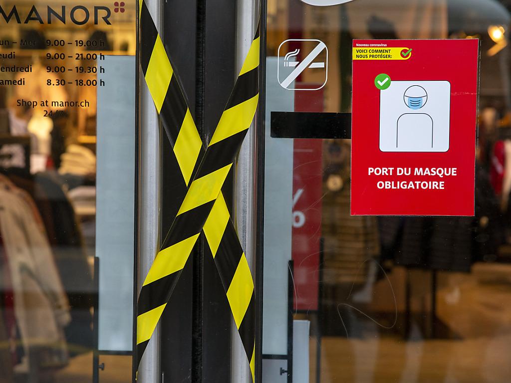 (Keystone-ATS) A Genève, la majorité des commerces du centre-ville n’ont pas anticipé la levée des mesures sanitaires. Tôt jeudi matin, avant l’ouverture, l’obligation du port du masque était encore affichée sur la plupart des portes.