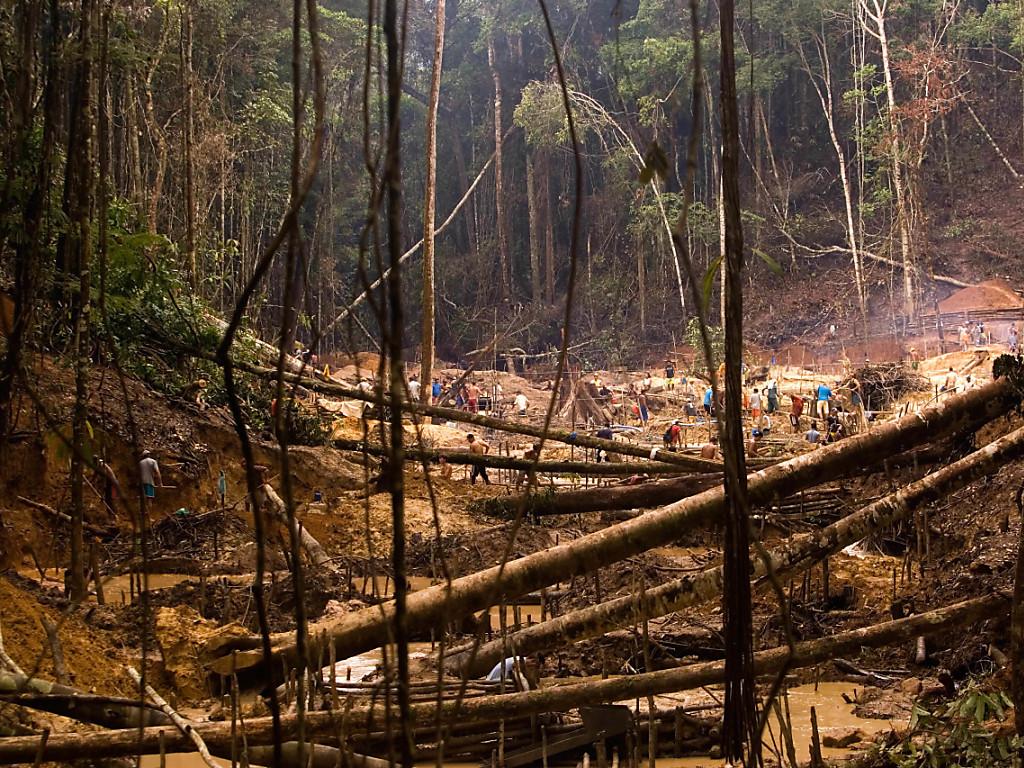 L'abattage des grands arbres est particulièrement néfaste à la forêt amazonienne. Ici, un site d'extraction aurifère au Brésil (archives). KEYSTONE/AP/Victor R. Caivano sda-ats