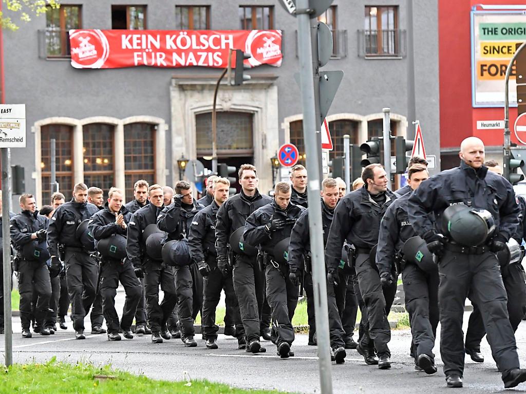 Près de 4000 policiers ont été mobilisés pour assurer la sécurité du congrès de l'Alternative pour l'Allemagne (AfD) à Cologne. KEYSTONE/AP/MARTIN MEISSNER sda-ats