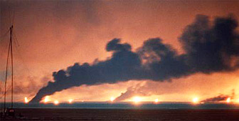Avant d’évacuer le Koweït en 1991, les armées irakiennes mettent le feu à 1664 puits de pétrole. C’est une catastrophe économique et écologique sans précédent. Red Adair, le pompier américain, affirme alors qu’il faudra au moins cinq ans pour venir à bout des incendies.