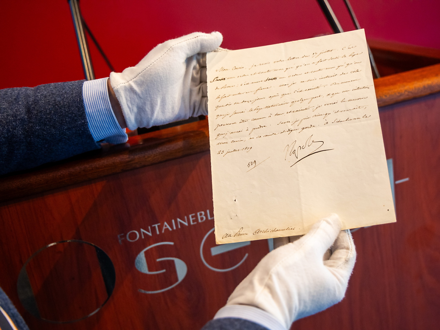 Une lettre de Napoléon feignant de désapprouver l'arrestation du pape Pie VII, qu'il avait pourtant ordonnée, a été vendue 26'360 euros aux enchères à Fontainebleau dimanche, a annoncé la maison de vente Osenat, qui l'organisait.