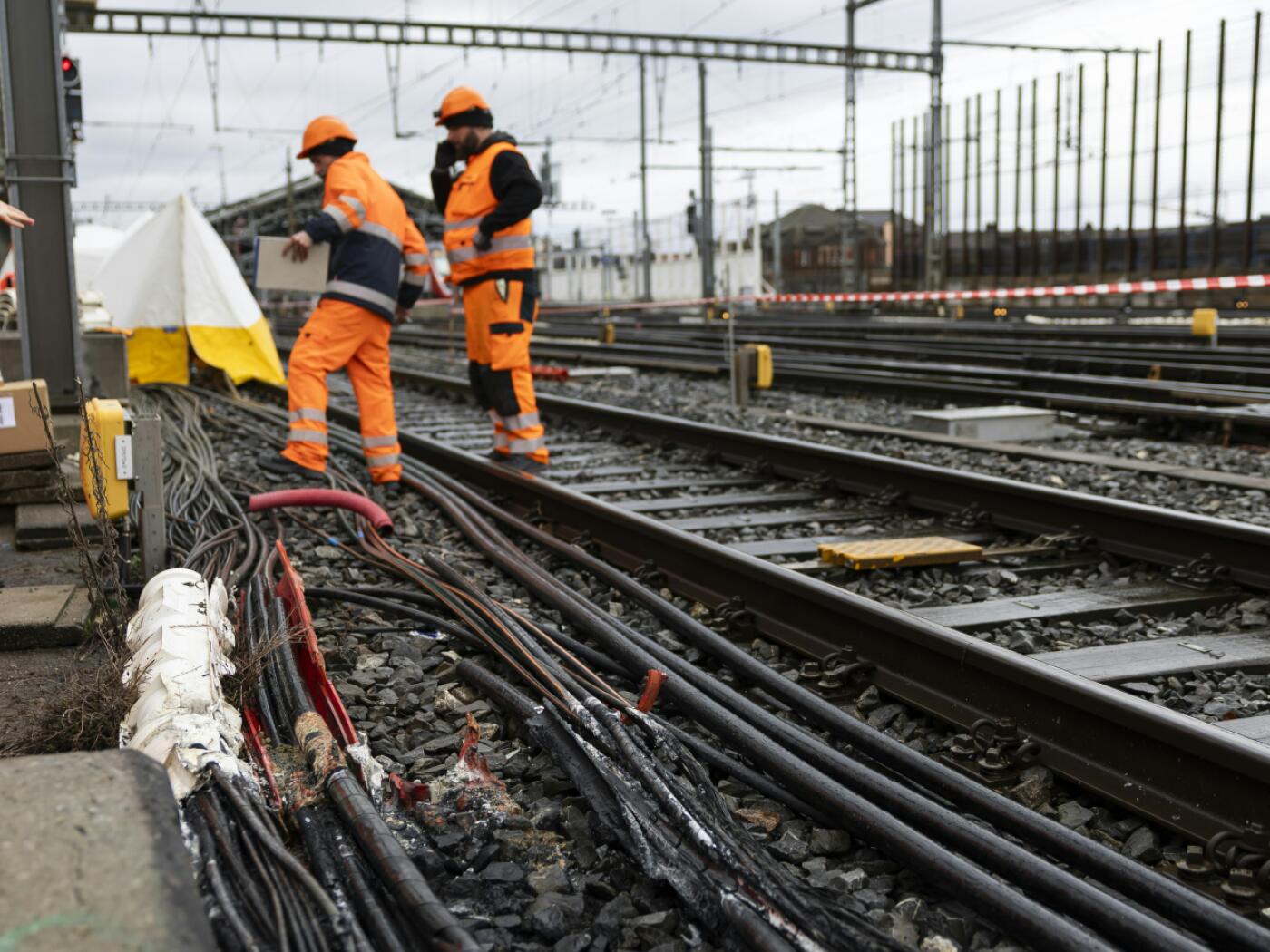 Les travaux allaient bon train lundi matin à la gare de Lausanne pour réparer les 40 câbles qui se sont embrasés dimanche soir suite au probable lancer d'un engin pyrotechnique. "Un travail énorme", ont expliqué les CFF en visite de presse.