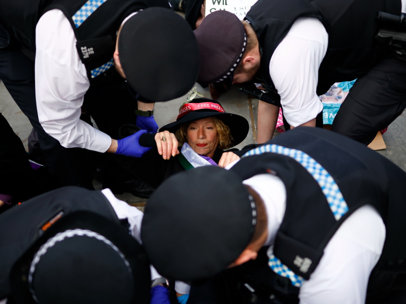 Parmi les personnes arrêtées figurait Robert Del Naja, chanteur membre du groupe britannique Massive Attack, qui était assis avec une pancarte sur laquelle on pouvait lire «I Support Palestine Action» et qui a ensuite été emmené par trois policiers, selon l’agence Press Association (PA).