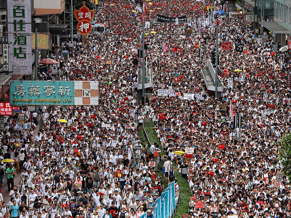(Keystone-ATS) Hong Kong a vécu dimanche l’une de ses manifestations les plus massives depuis sa rétrocession à Pékin. Des centaines de milliers de personnes ont marché pour dénoncer un projet du gouvernement local d’autoriser des extraditions vers la Chine continentale.