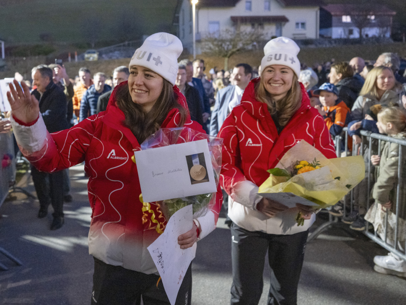 La commune de La Roche (FR) a fêté dignement jeudi soir ses deux médaillées d'or olympiques de Milan-Cortina Mathilde Gremaud, en ski acrobatique, et Marianne Fatton, en ski-alpinisme. La population leur a réservé un accueil à la hauteur de leurs exploits sportifs.