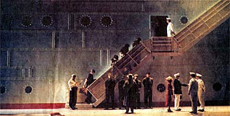Le décor, d’abord, fait immanquablement penser au chef d’œuvre cinématographique de Fellini «E la nave va». Puisque le metteur en scène zurichois, Dieter Kaegi, a placé son opéra sur un paquebot.