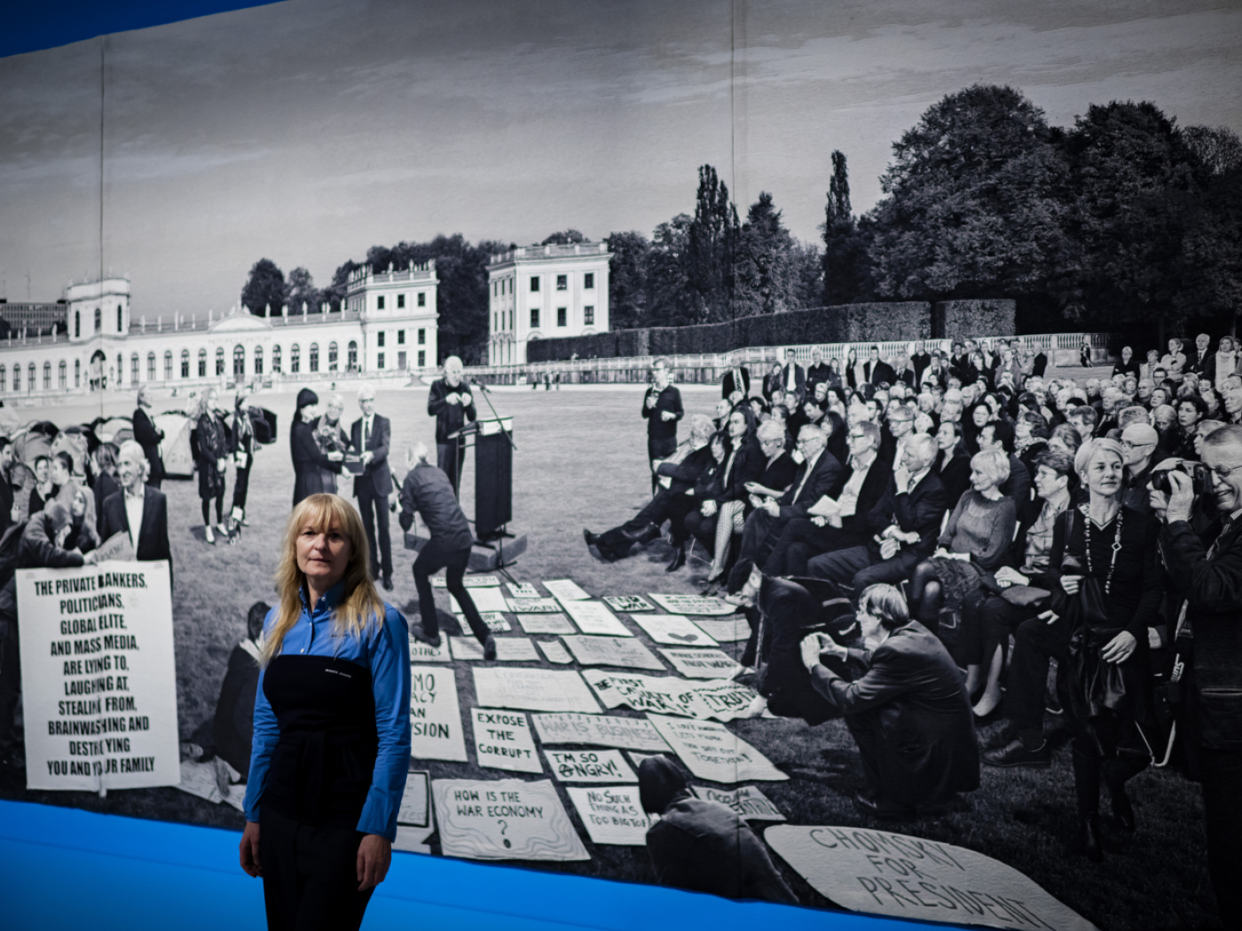 Pour l’exposition, Goshka Macuga a notamment créé une tapisserie répondant à l’historique Arche de Noé également présentée dans l’exposition. Elle a imaginé une scène tissée de proche fin du monde, un temps suspendu entre menace nucléaire et tsunami vengeur. Intitulée «Ark of No», cette tapisserie a valeur de constat, de mise en garde et de déclaration universelle, en référence aux actuels cataclysmes socio-politiques internationaux.