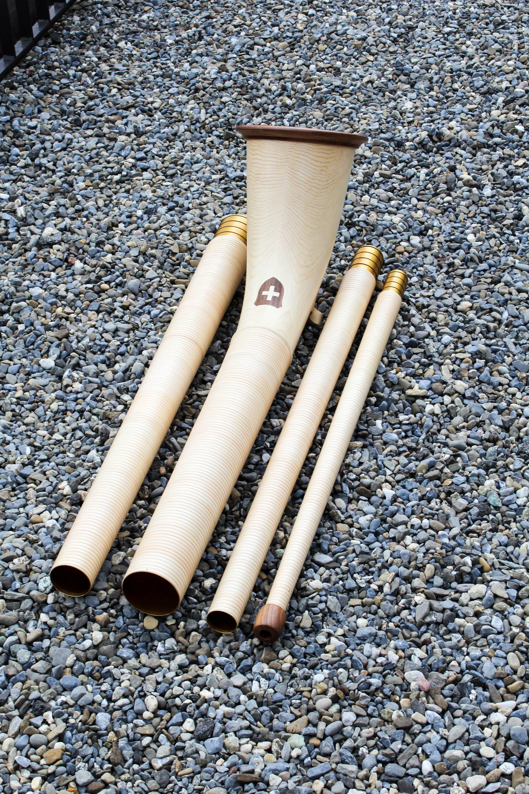 C'est en 1996 que Thomas EichenbergerLien externe a commencé à jouer au cor des Alpes. Fasciné par le son naturel qui se dégage de cet instrument typique de la culture alpine, il a très vite souhaité en construire un de ses propres mains.