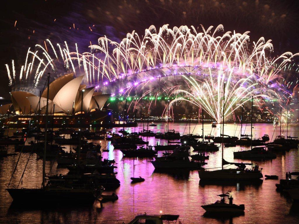 A minuit pile (14h00 en Suisse), 1,5 million de spectateurs ont découvert une féerie pyrotechnique de toutes les couleurs au-dessus de l’emblématique baie de Sydney et de son opéra photogénique. Le spectacle a rendu hommage à quelques-uns des grands disparus de 2016, notamment des étoiles pour David Bowie et une pluie de lumières violettes (Purple Rain) pour le musicien Prince.
