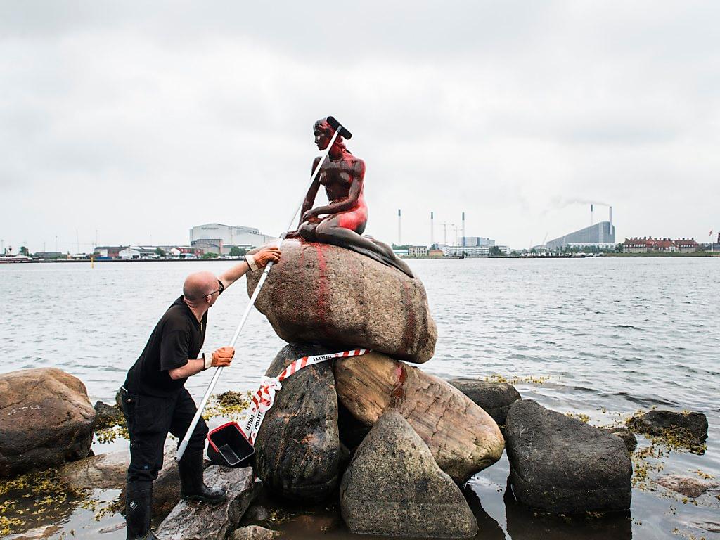 (Keystone-ATS) La Petite Sirène de Copenhague, le monument le plus célèbre du Danemark, a été peinte en blanc et bleu, a annoncé mercredi la police danoise. C’est la deuxième fois en l’espace de deux semaines que la statue est recouverte de peinture.