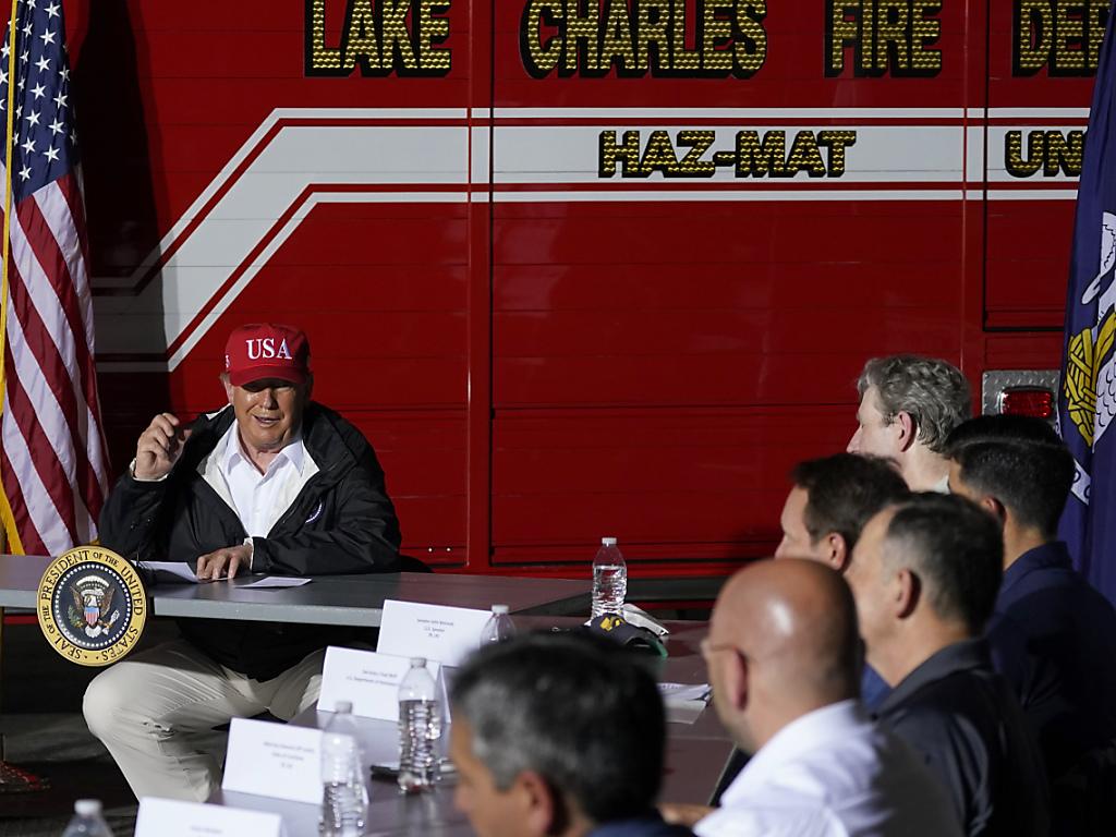 Le locataire de la Maison Blanche, casquette rouge «USA» vissée sur le crâne, a d’abord atterri dans la ville de Lake Charles, où se trouvent plusieurs raffineries non loin de la côte du golfe du Mexique. Sans masque, il a visité un quartier aux arbres abattus et aux maisons endommagées, ainsi qu’un entrepôt.
