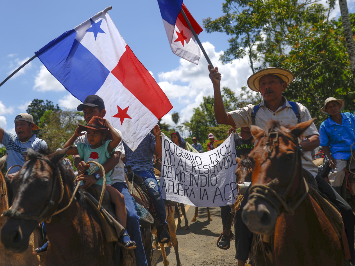 Un cortège bariolé d'agriculteurs panaméens a défilé samedi, parfois à cheval, contre la construction d'un barrage sur le Río Indio, destiné à garantir le bon fonctionnement du canal de Panama en cas de sécheresse.