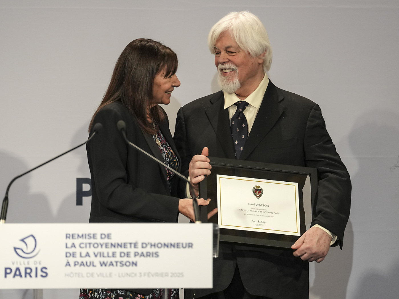 Paul Watson, figure de la défense des baleines, a reçu lundi la citoyenneté d'honneur de la ville de Paris des mains de la maire Anne Hidalgo. Elle a estimé que la nationalité française devrait lui être accordée.