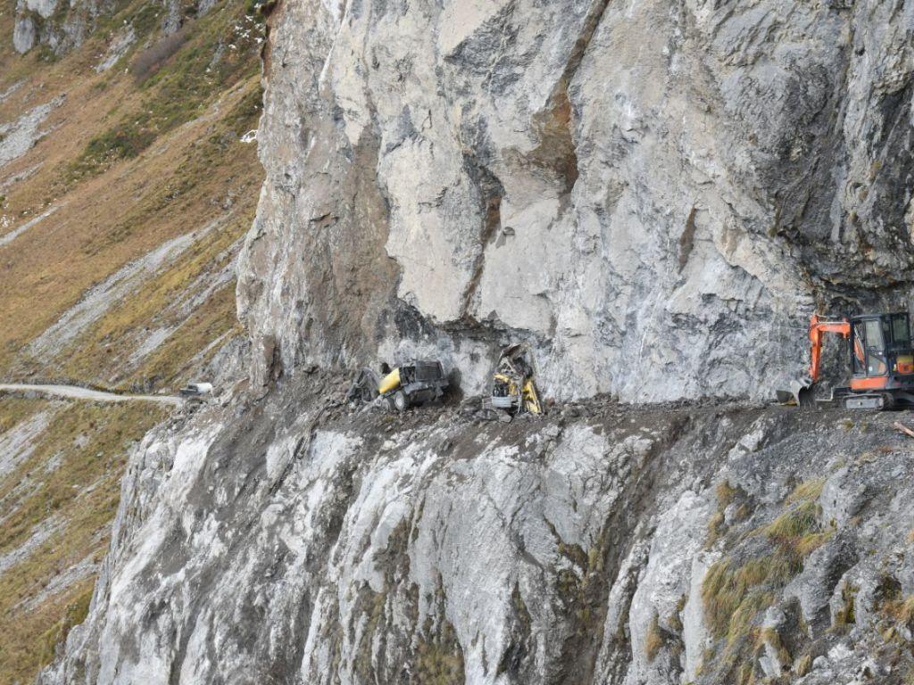 Accessible en temps normal aussi bien par le canton d’Uri que par celui de Schwyz, le chemin qui relie les alpages de Ruosalp et d’Alplen le long d’une paroi rocheuse est actuellement fermé. Il est obstrué à l’endroit de l’éboulement. Des gravats sont également visibles en dessous de son tracé.