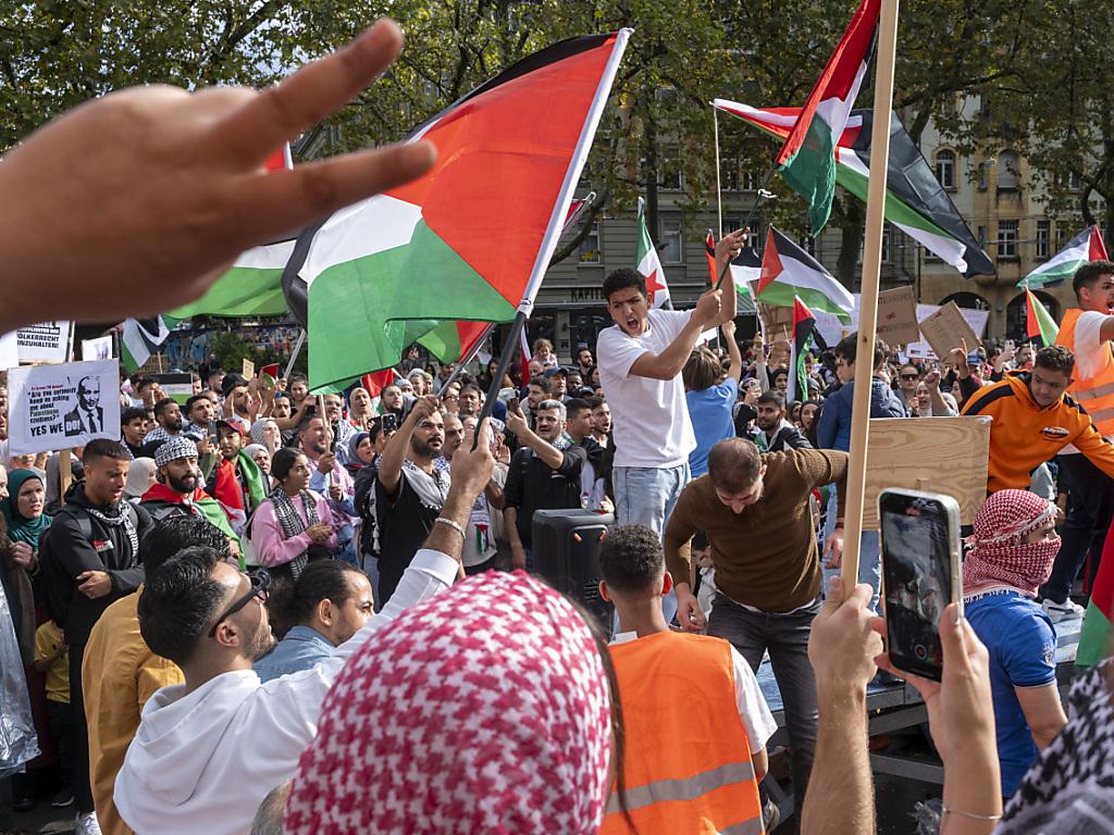 Selon les estimations d’une journaliste de Keystone-ATS, 400 à 500 personnes se sont jointes à la manifestation sur la place. De nombreux participants ont brandi des drapeaux palestiniens, levé des pancartes et scandé des slogans tels que «Viva via Palestina» ou «Israël terroriste».