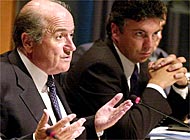 Le président de la FIFA Joseph Blatter (à gauche) avec le secrétaire général de l'organisation Michel Zen Ruffinen. Keystone