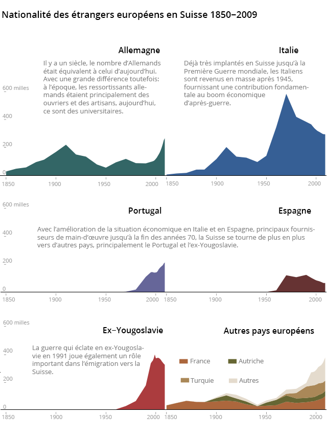 Aujourd’hui, la Suisse est un des premiers pays au monde en ce qui concerne le taux de population étrangère. Par ailleurs, plus d’une personne sur quatre vivant dans la Confédération est née à l’étranger.
