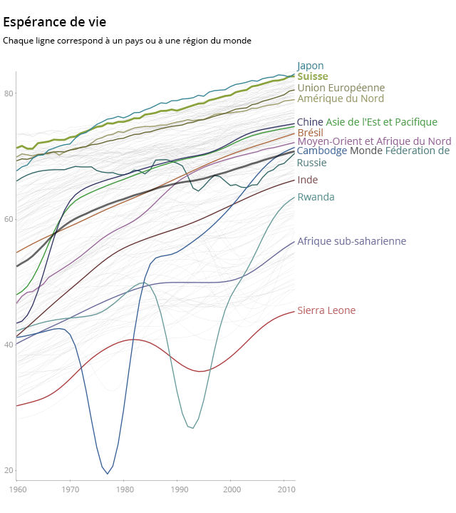 Contrairement à une idée reçue, ce n’est pas tant l’augmentation de l’espérance de vie que la baisse de la fécondité qui est la raison principale du vieillissement de la population. L’espérance de vie mondiale moyenne a augmenté de plus de 35% (18 années) entre 1960 et 2012. La Suisse a une espérance de vie moyenne à la naissance parmi les plus élevées au monde (plus de 82 ans en 2013).