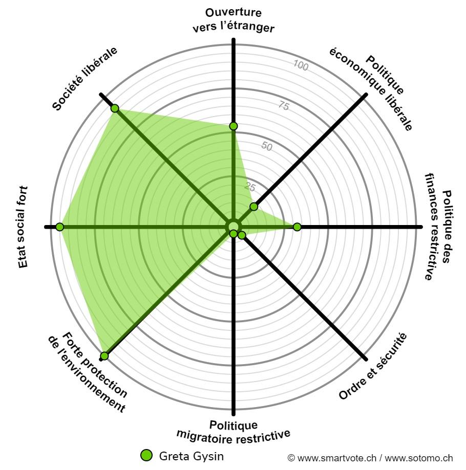 Au Tessin, sa notoriété est bien antérieure à celle de Greta Thunberg. Elle n’aurait pas eu à porter le même prénom que la Suédoise pour attirer l’attention. Mais une jeune Verte prénommée Greta, candidate puis élue au Parlement national, l’année précise où le mouvement pour le climat lancé par la jeune activiste scandinave prend une tournure mondiale: la tentation était trop grande pour les médias. Ils ont rapidement braqué sur elle leurs projecteurs et fait d’elle la «Greta suisse» ou la «Greta tessinoise». Elle a su réagir avec ironie à travers son slogan: «Greta? Gysin!Lien externe».