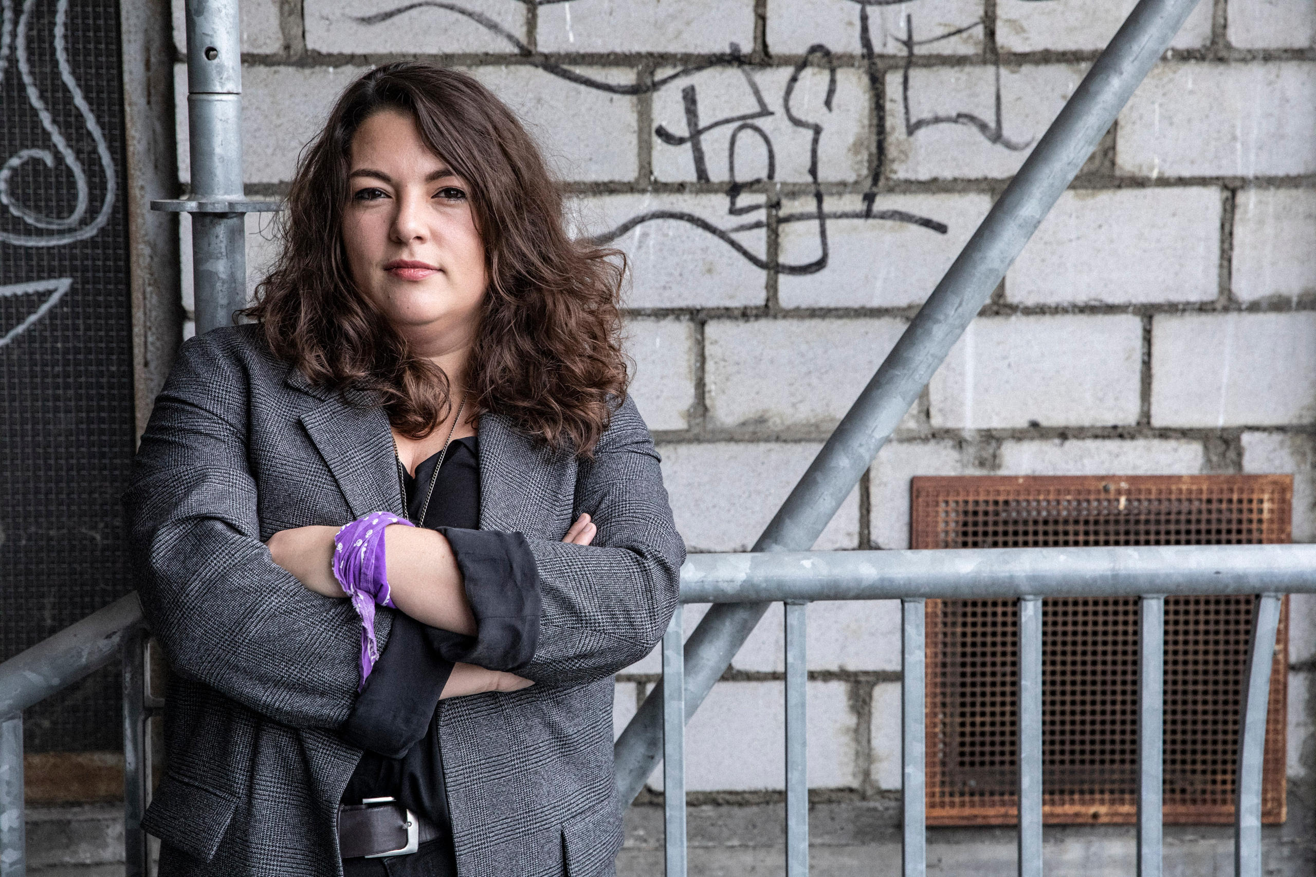 Le foulard violet au bras de Tamara FunicielloLien externe, symbole de la grève des femmes du 14 juin 2019, contraste avec le décor industriel de l’ancienne usine de machines d’imprimerie Wifag, au cœur de la ville de Berne. La nouvelle députée socialiste de 29 ans affiche la couleur de son combat féministe.