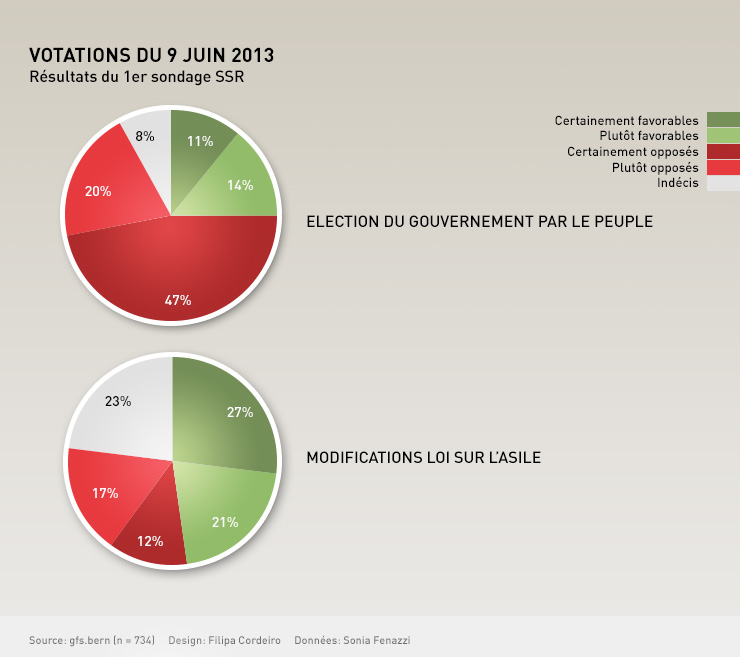 Sur mandat du diffuseur national SSR, l’institut gfs.bern publie son premier sondage sur les deux thèmes soumis au vote le 9 juin: l’initiative «Election du Conseil fédéral par le peuple» et la révision de la Loi sur l’asile.