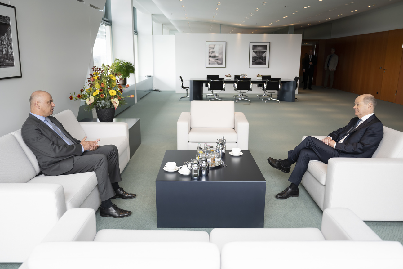Un mois plus tard, le 18 avril, le président de la Confédération suisse Alain Berset rend visite au chancelier allemand Olaf Scholz. Chars, munitions, Ukraine? Berset botte en touche, il renvoie une fois de plus à la neutralité suisse. On en reste au non. «Nous avons pris connaissance des décisions prises jusqu’à présent et espérons qu’il se passera quelque chose», répond le chancelier. Mais il n’a pas l’air d’y croire.