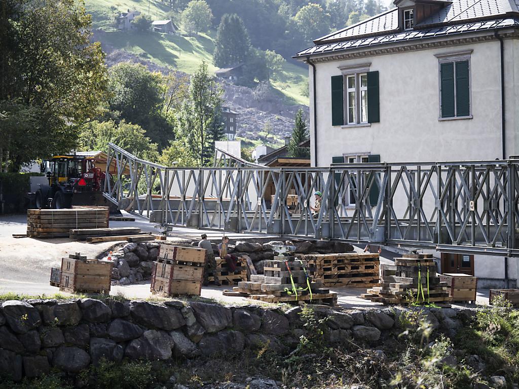 Le pont permet d’accéder à la zone résidentielle et industrielle touchée par le glissement de terrain et qui était coupée du monde, même pour les engins de déblaiement lourds, a déclaré de son côté Hanspeter Speich, chef d’état-major de l’organe de conduite de la commune. La surveillance est prioritaire avant de commencer les travaux de déblaiement.