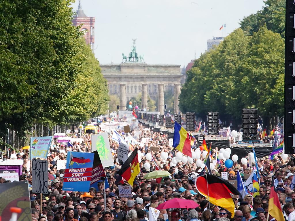 La foule est très mélangée, de toutes classes d’âge, y compris des familles avec des enfants en bas âge. Les drapeaux de la paix arc-en-ciel et de l’Allemagne se côtoient, les manifestants ont aussi à plusieurs reprises crié «Merkel doit partir!», le mot d’ordre du parti d’extrême droite Alternative pour l’Allemagne contre la chancelière.
