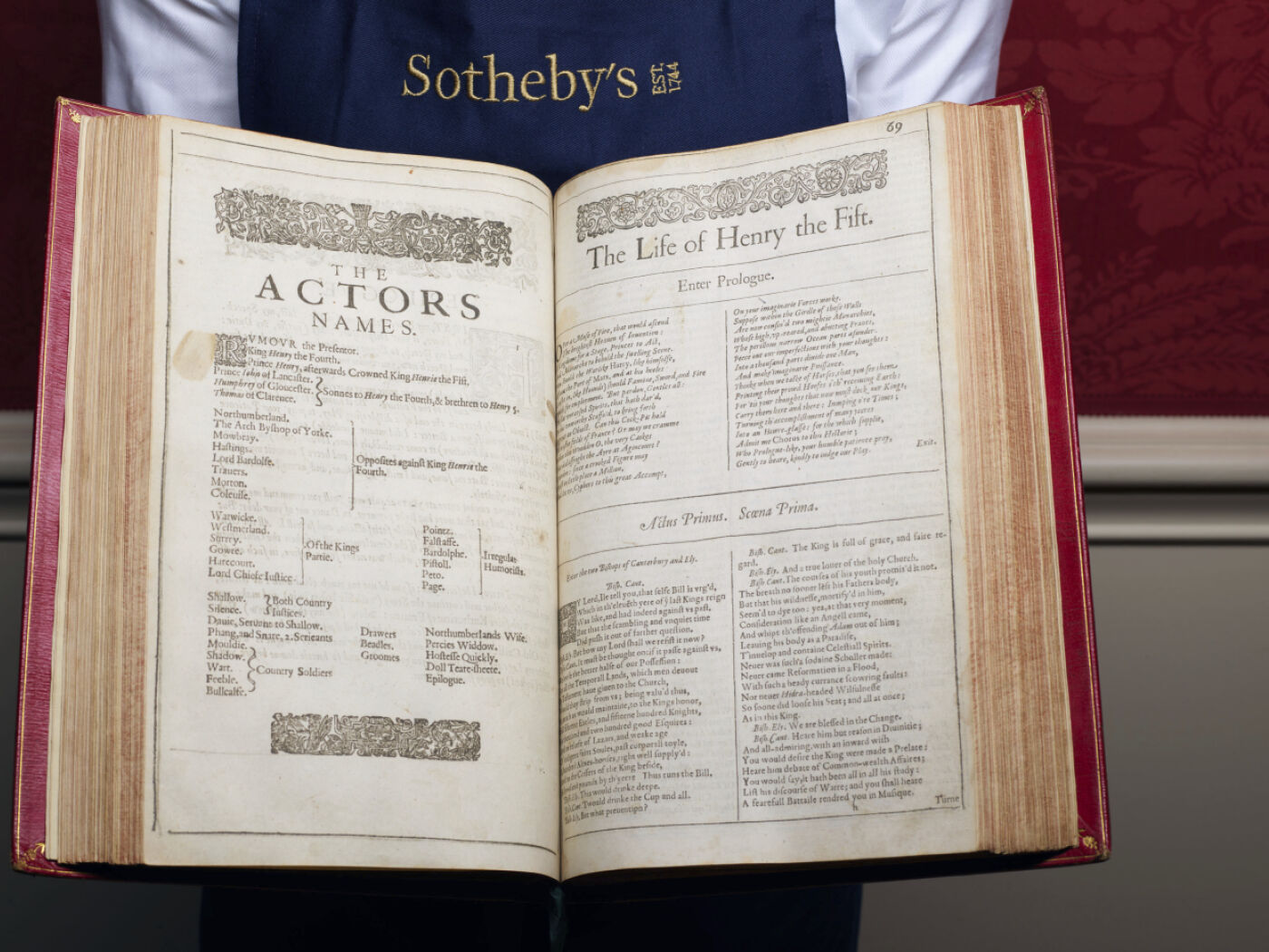 (Keystone-ATS) Le «Premier Folio», imprimé en 1623, sept ans après la mort de Shakespeare, est le premier recueil d’oeuvres du célèbre dramaturge britannique. Comprenant 36 pièces, dont 18 qui n’avaient pas été imprimées auparavant, comme «Macbeth», «La Nuit des Rois» et «Jules César», il est considéré comme l’un des livres les plus importants de la littérature anglaise.