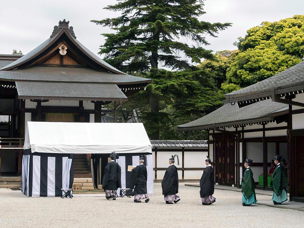 Les images de la cérémonie de lundi, à laquelle Naruhito n’a pas pris part, montrent les participants vêtus de longs et amples vêtements noirs et coiffés de chapeaux ornés, marchant en procession en direction d’une tente rayée blanc et noir, pour y porter dans une boîte les deux fragments. Le très rare rituel n’avait été exécuté la dernière fois qu’en 1990, un an environ après que le père de Naruhito, Akihito, eut accédé au trône du Chrysanthème.