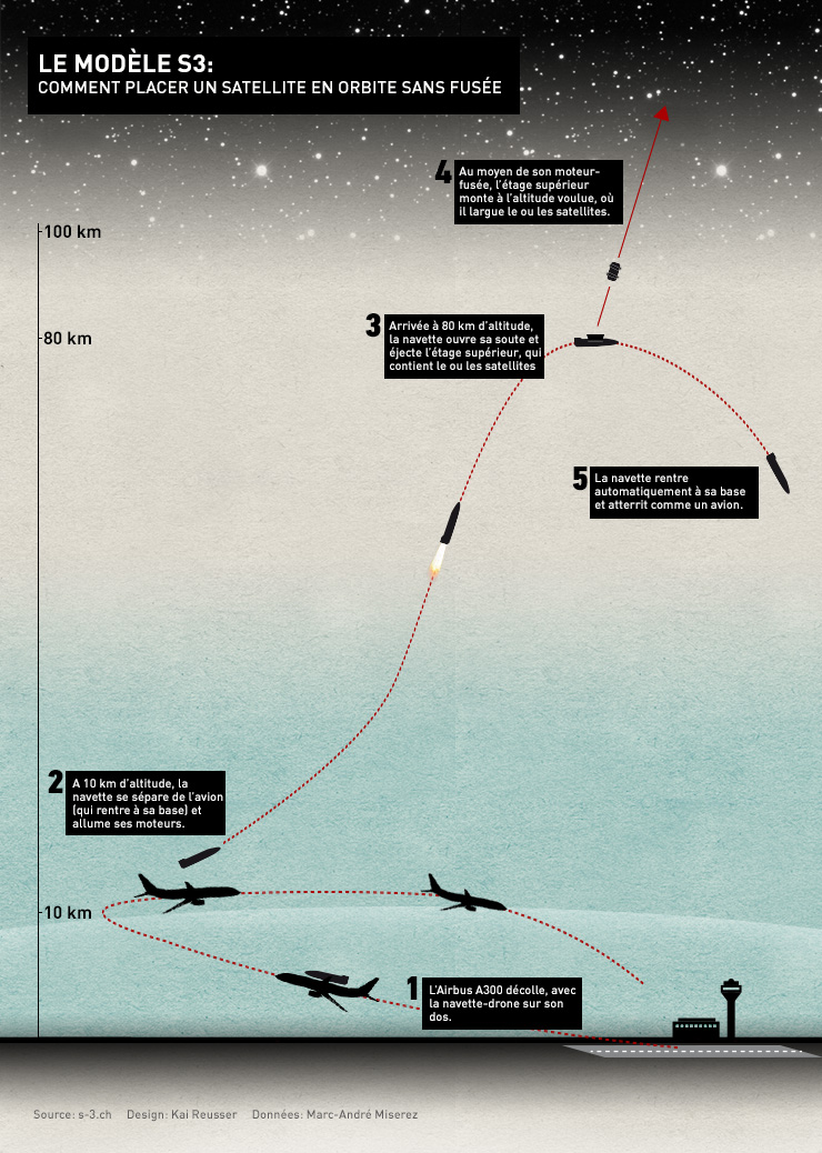 C’est ici que Pascal Jaussi, directeur du «Swiss Space Systems» (S3), promet de donner un coup d’accélérateur à la démocratisation de l’accès à l’espace. Lancée depuis un avion de ligne, la navette SOAR permettra en effet de propulser en orbite basse de petits satellites à coûts réduits.